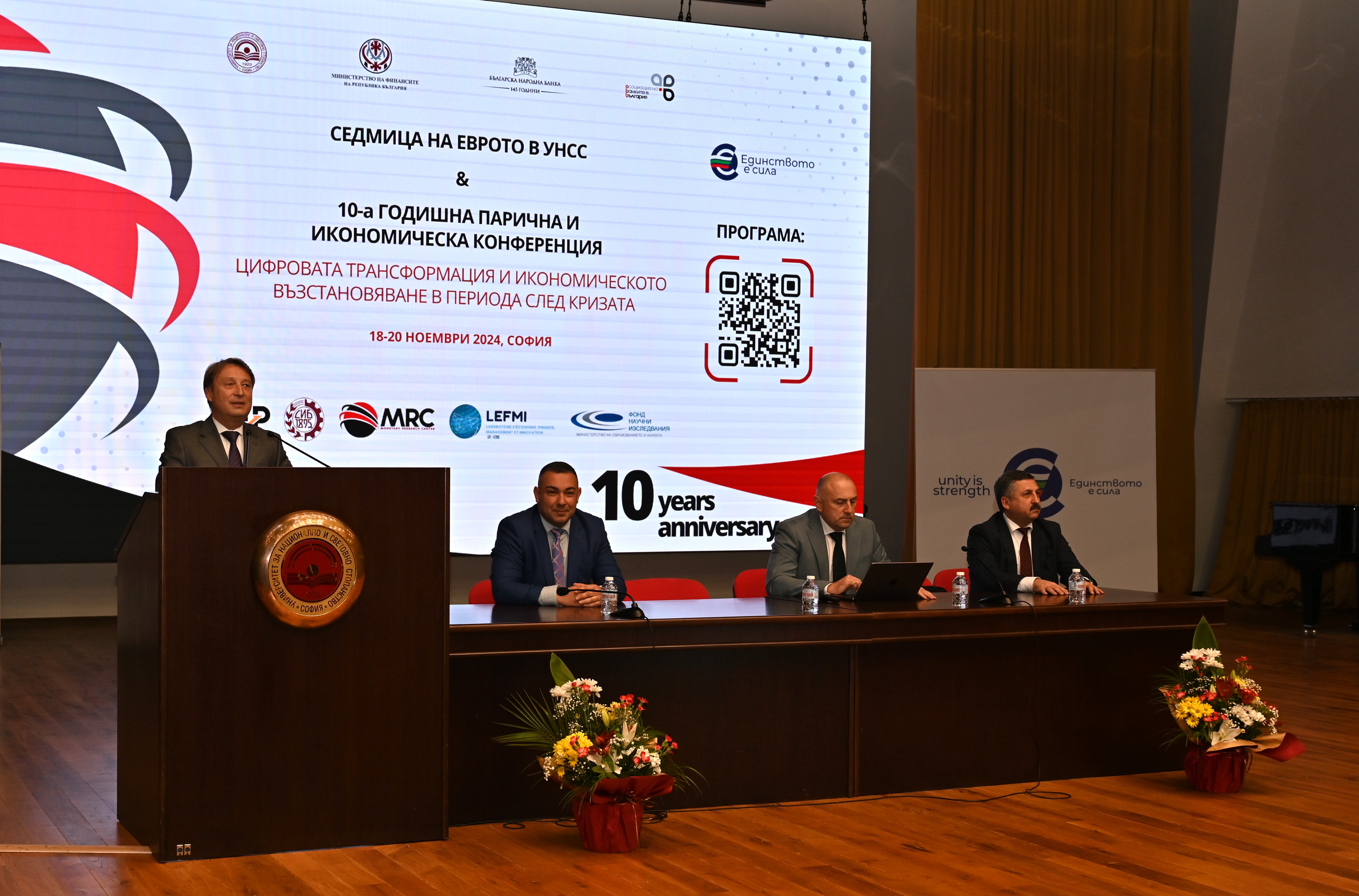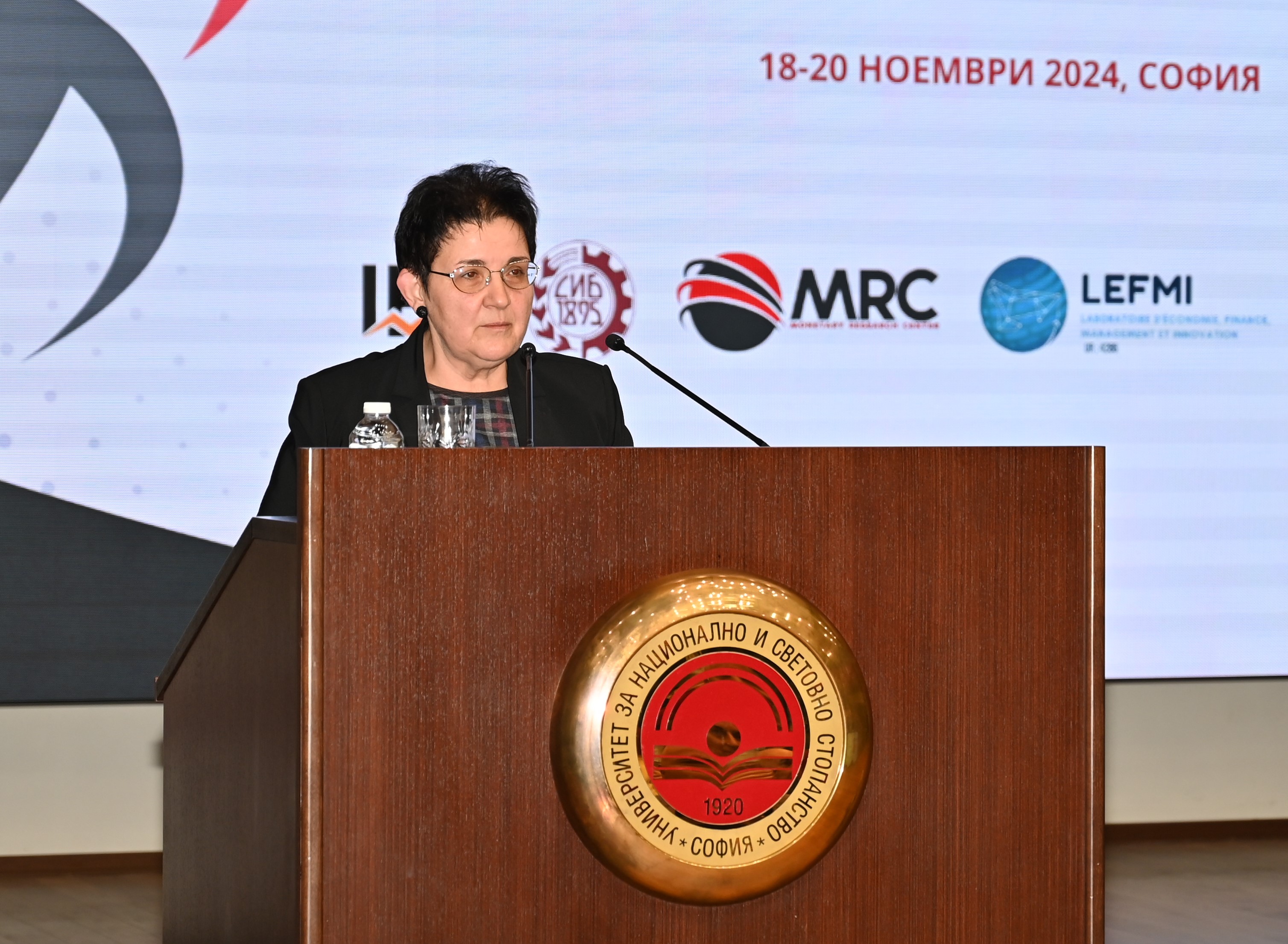 "I am glad that this Conference, organized by the UNWE in partnership with the Union of Economists in Bulgaria, has become a tradition that gives the opportunity to discuss current monetary problems, monetary policies, and financial issues", outlined Prof. D.Sc./Econ./ Tatiana Hubenova-Delisivkova, President of the Union of Economists in Bulgaria.